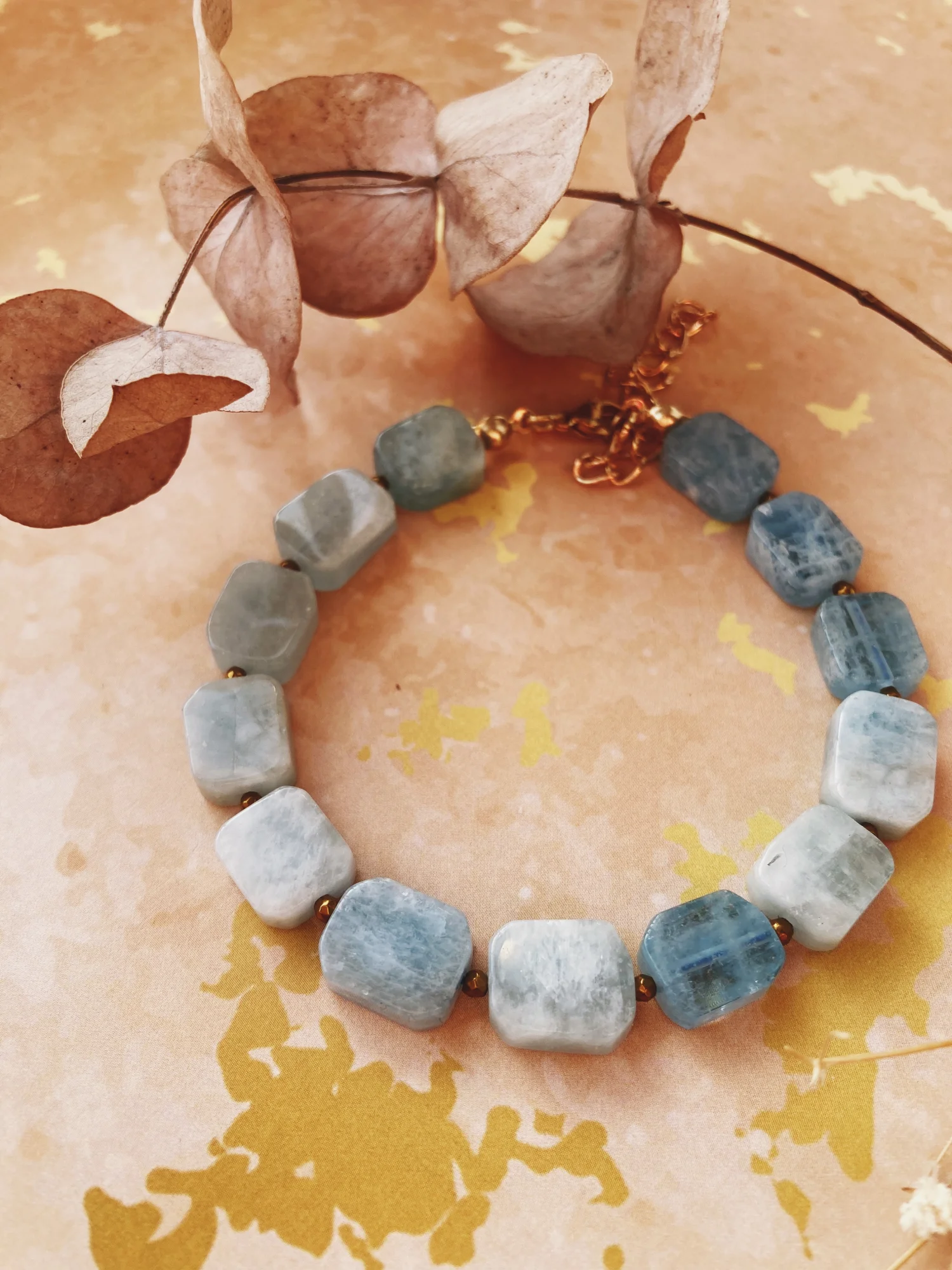 Bransoleta akwamaryn i hematyt z zapięciem ze stali chirurgicznej