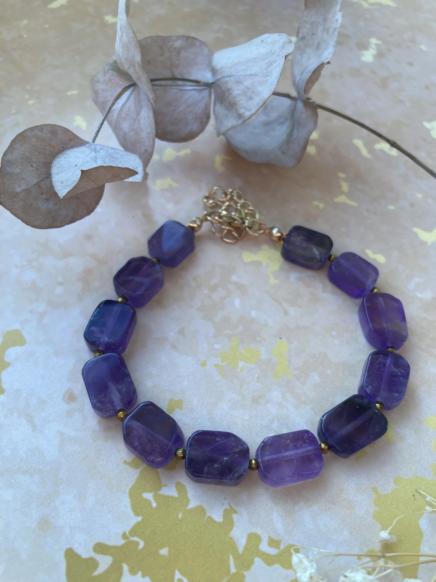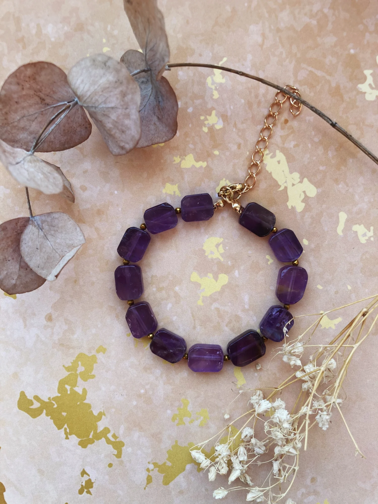 Bransoletka ametyst i hematyt z zapięciem ze stali chirurgicznej