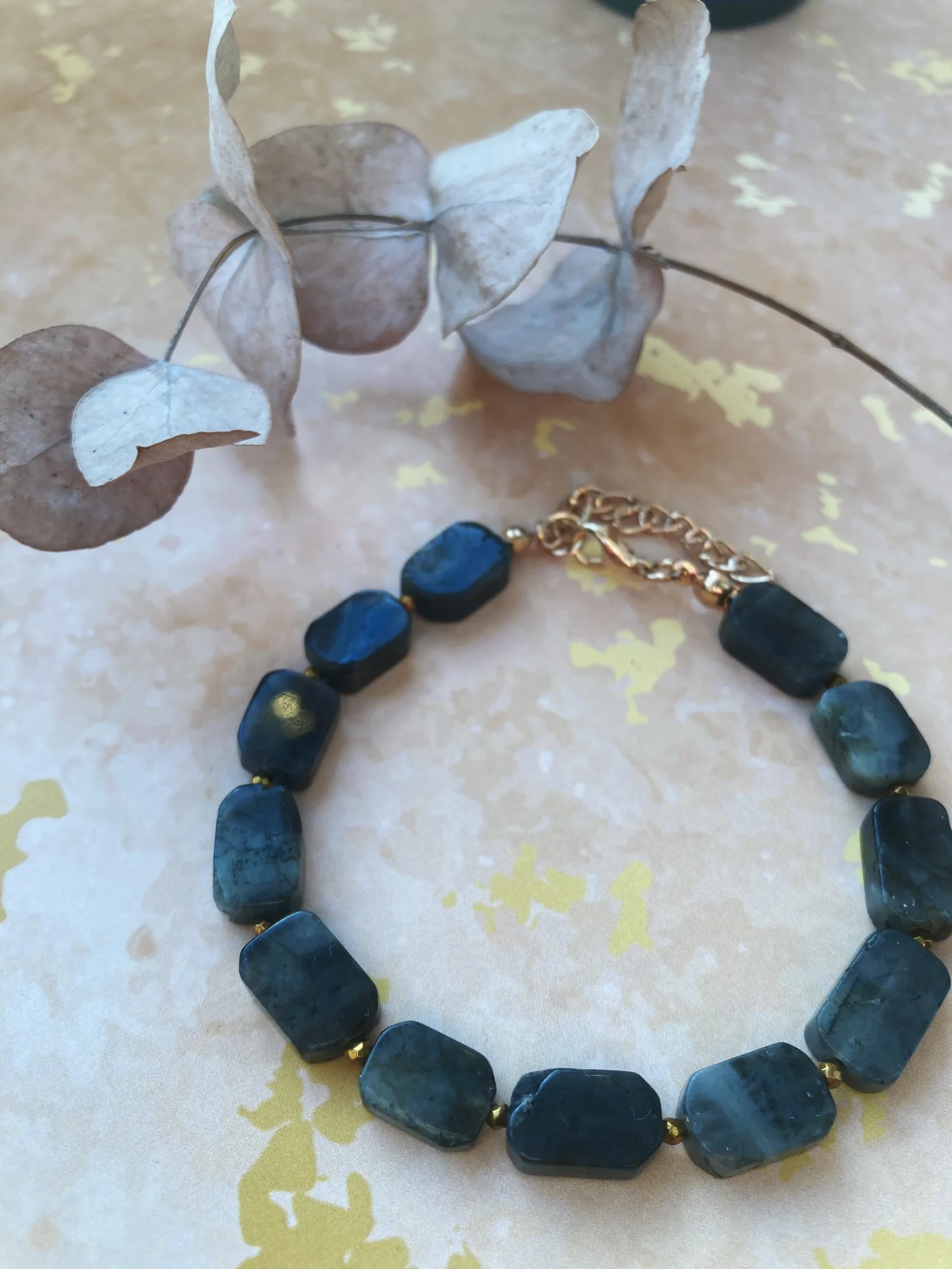 Bransoletka apatyt z hematytem z zapięciem ze stali chirurgicznej