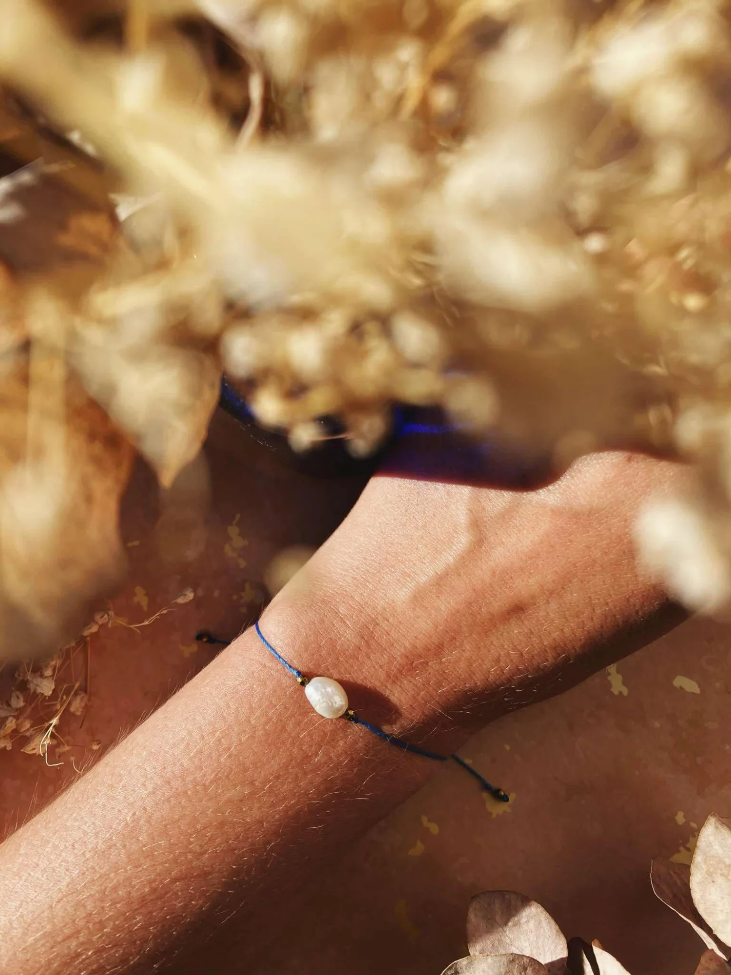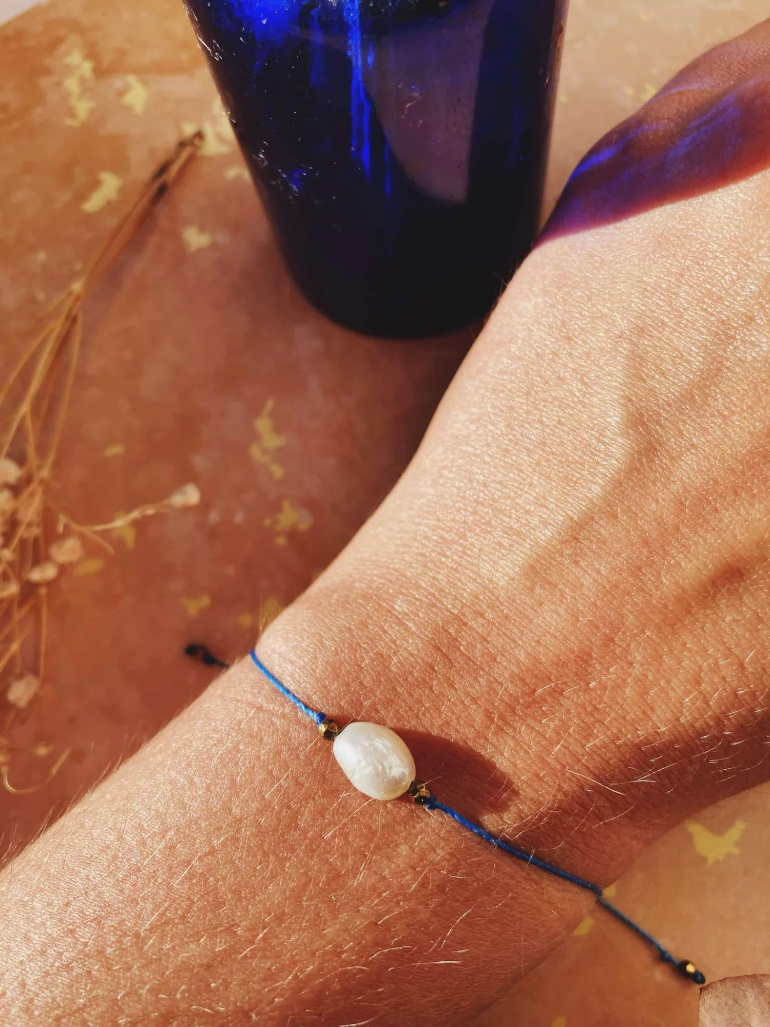 Bransoletka z perłą na niebieskim sznureczku