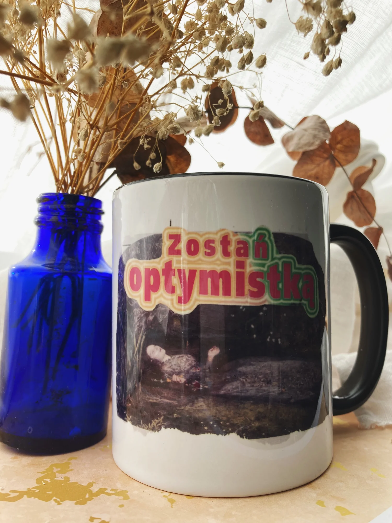 Kubek z kolażem „Zostań optymistką”