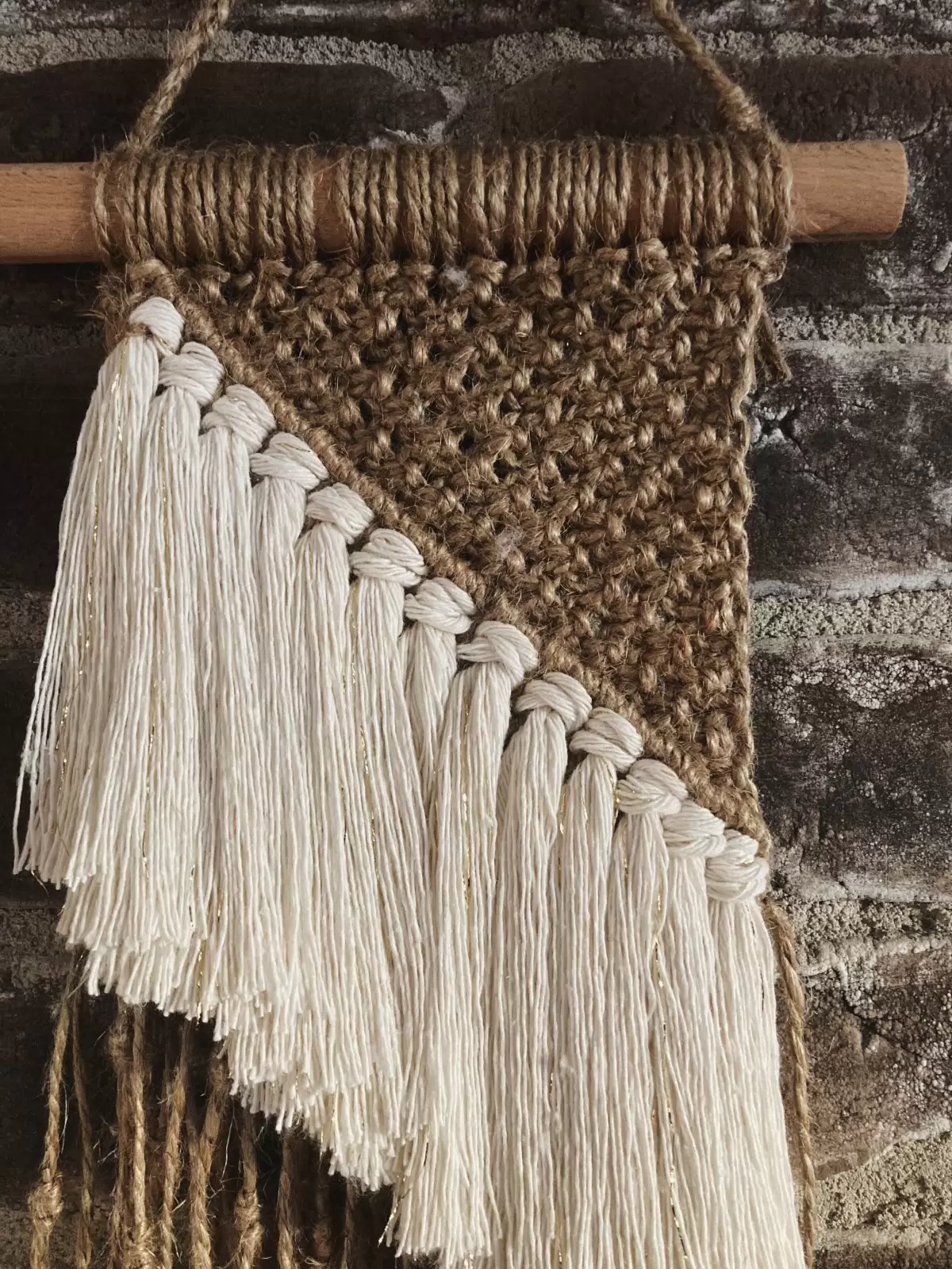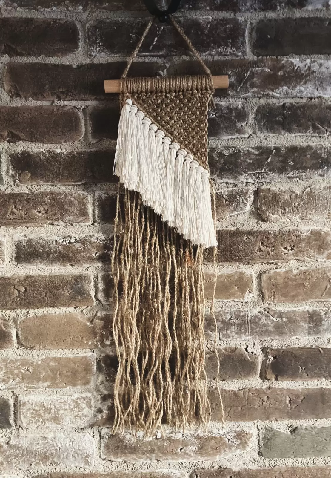 Makrama wykonana ze sznurka jutowego z dodatkiem sznurka bawełnianego