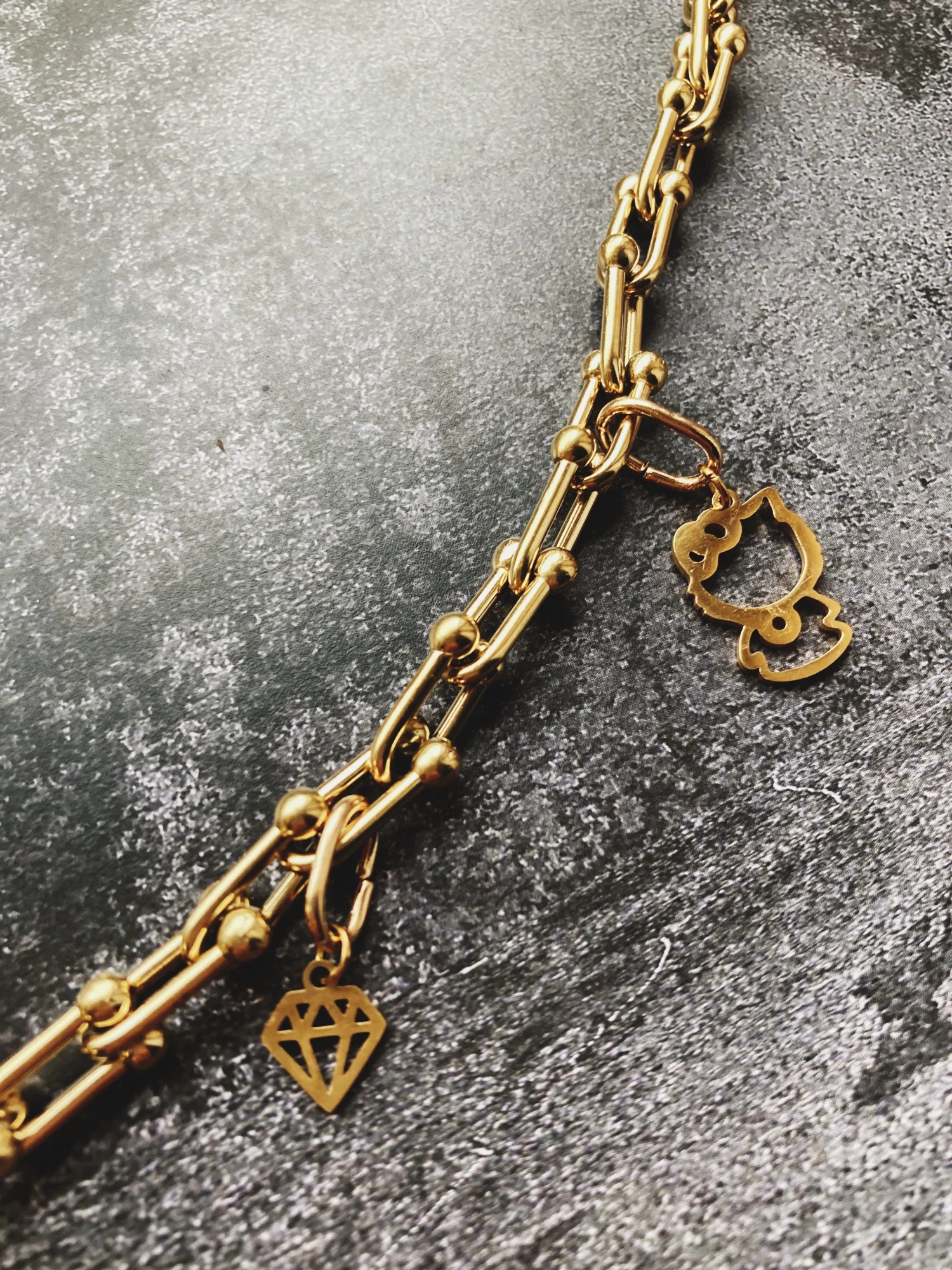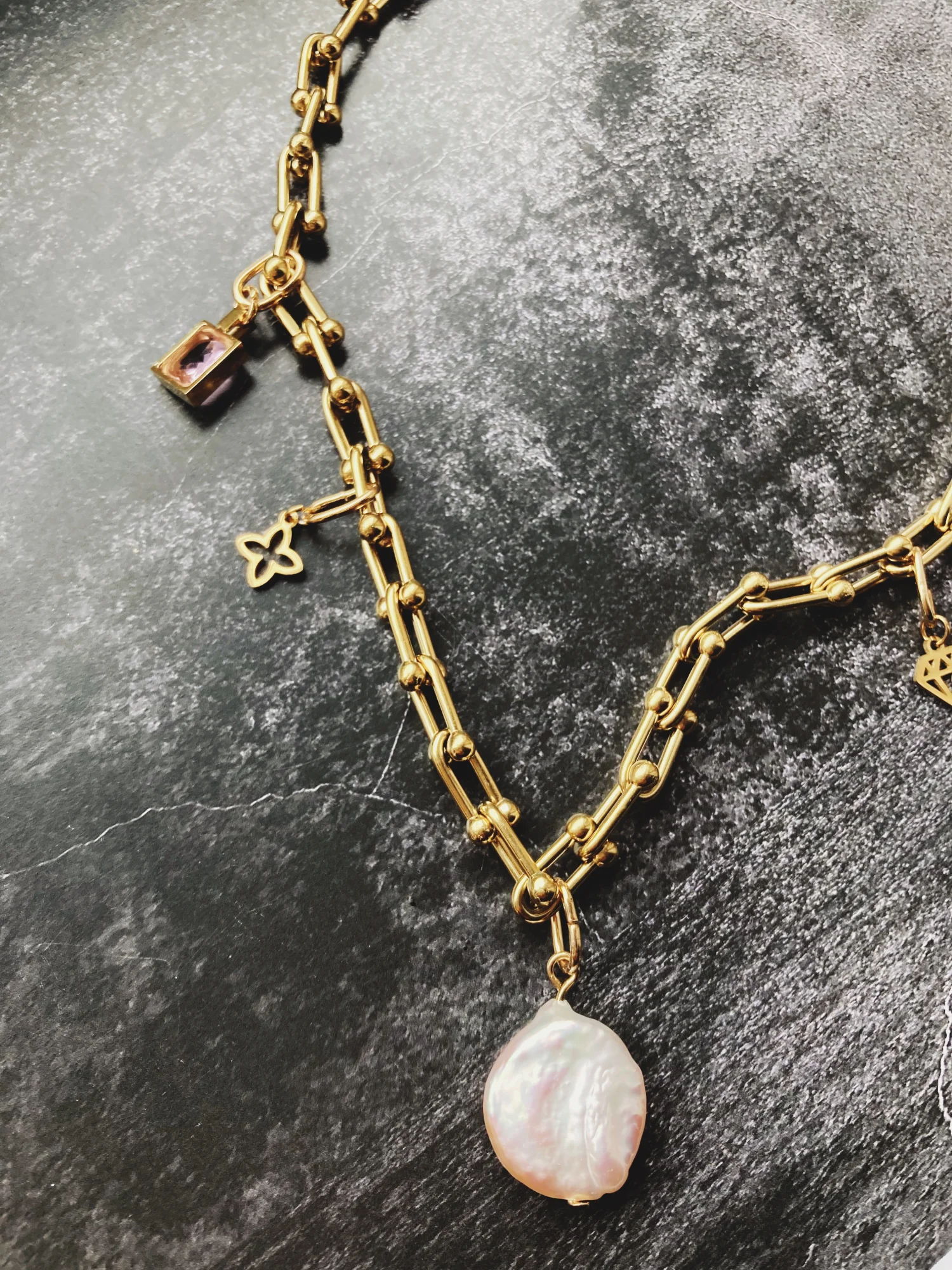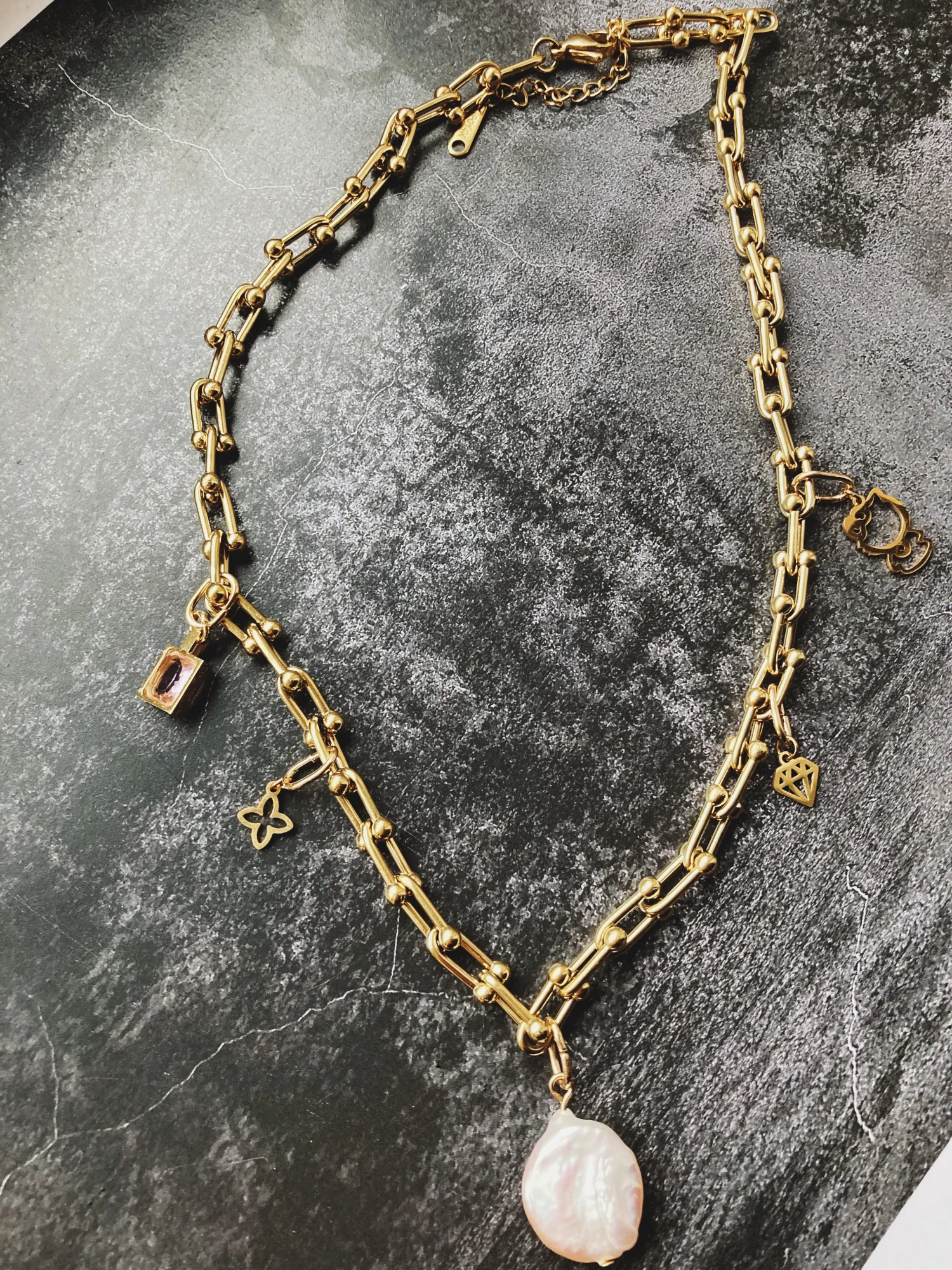 Naszyjnik z perłą barokową i zawieszkami ze stali chirurgicznej
