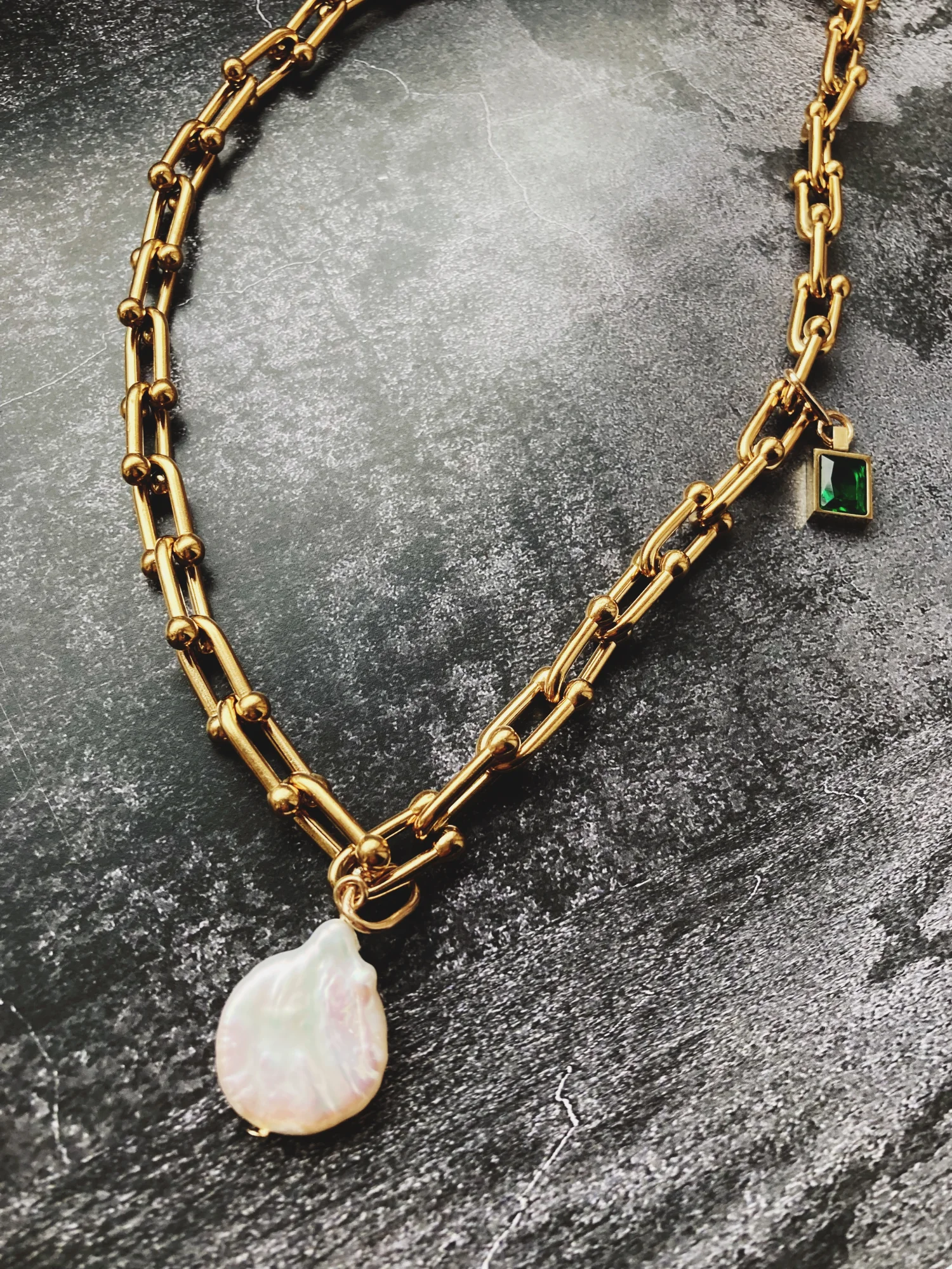 Naszyjnik z perłą barokową i zawieszką ze stali chirurgicznej