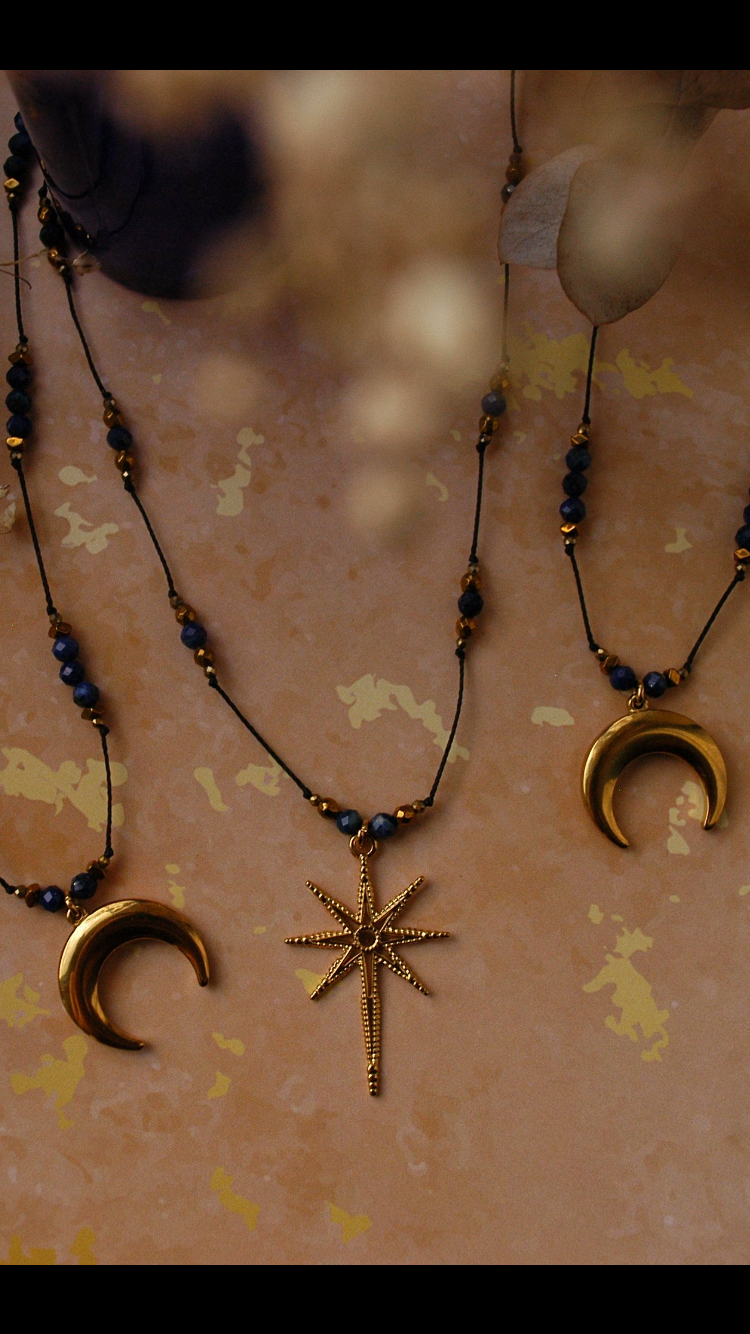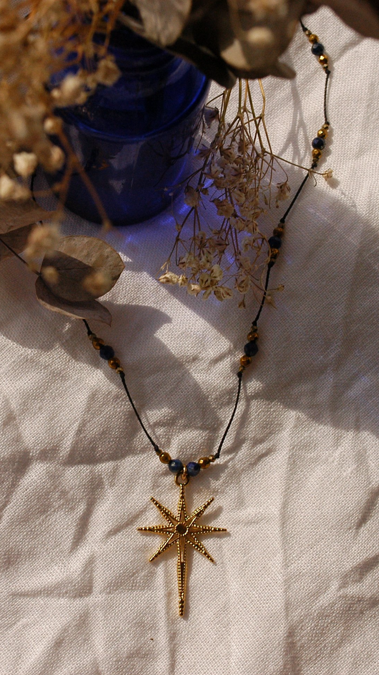 Naszyjnik gwiazda polarna i kamienie - lapis lazuli i hematyt