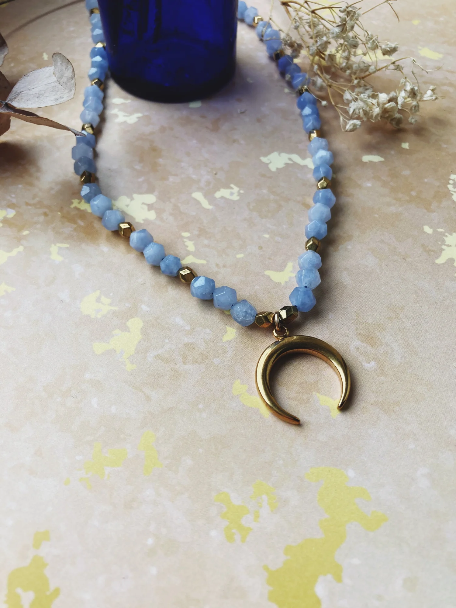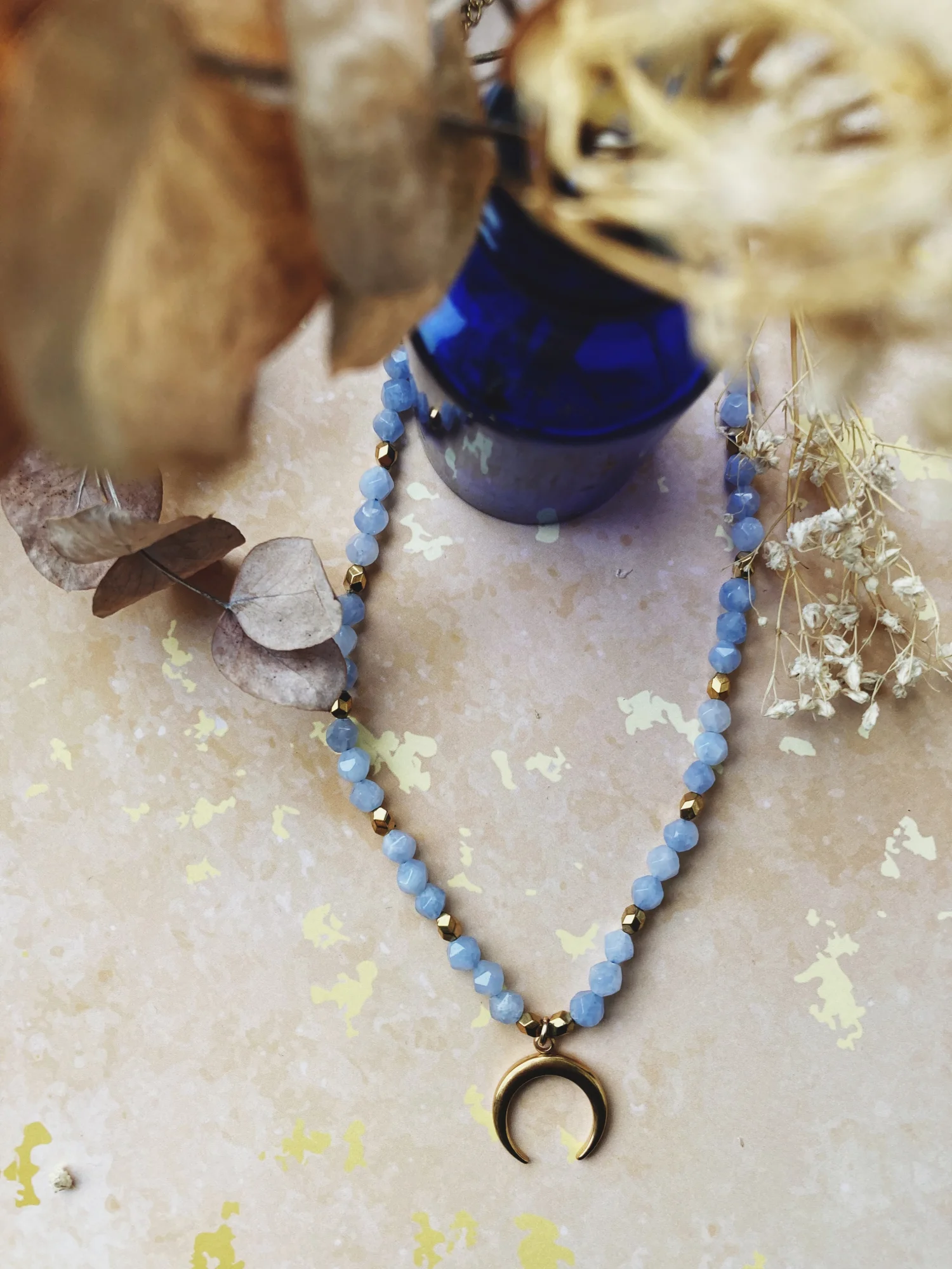 Naszyjnik Lunula i akwamaryn
