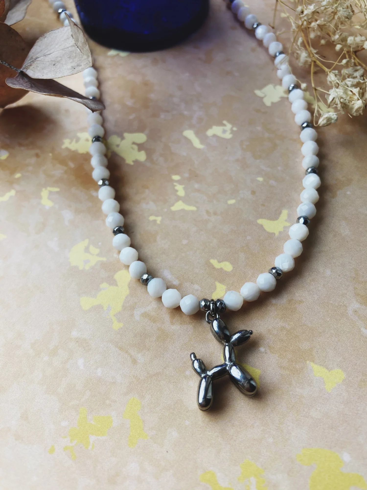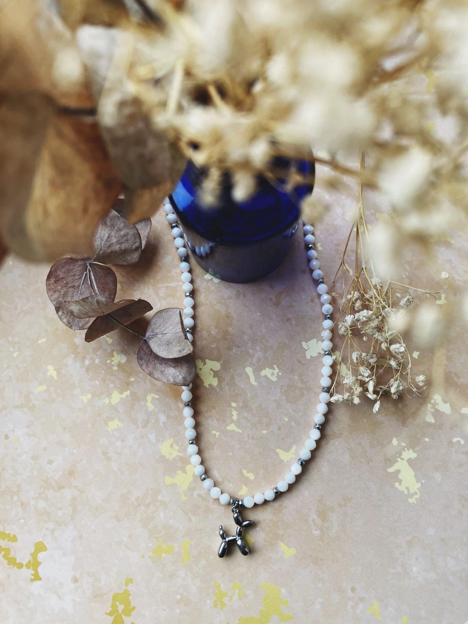 Naszyjnik z balonowym pieskiem, kamieniem księżycowym i hematytem