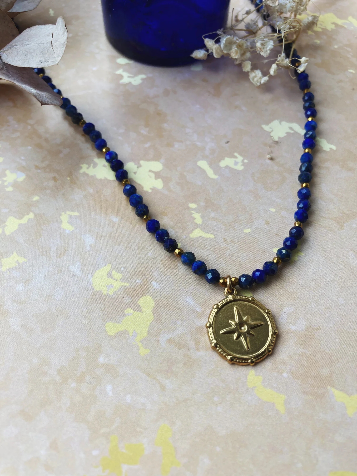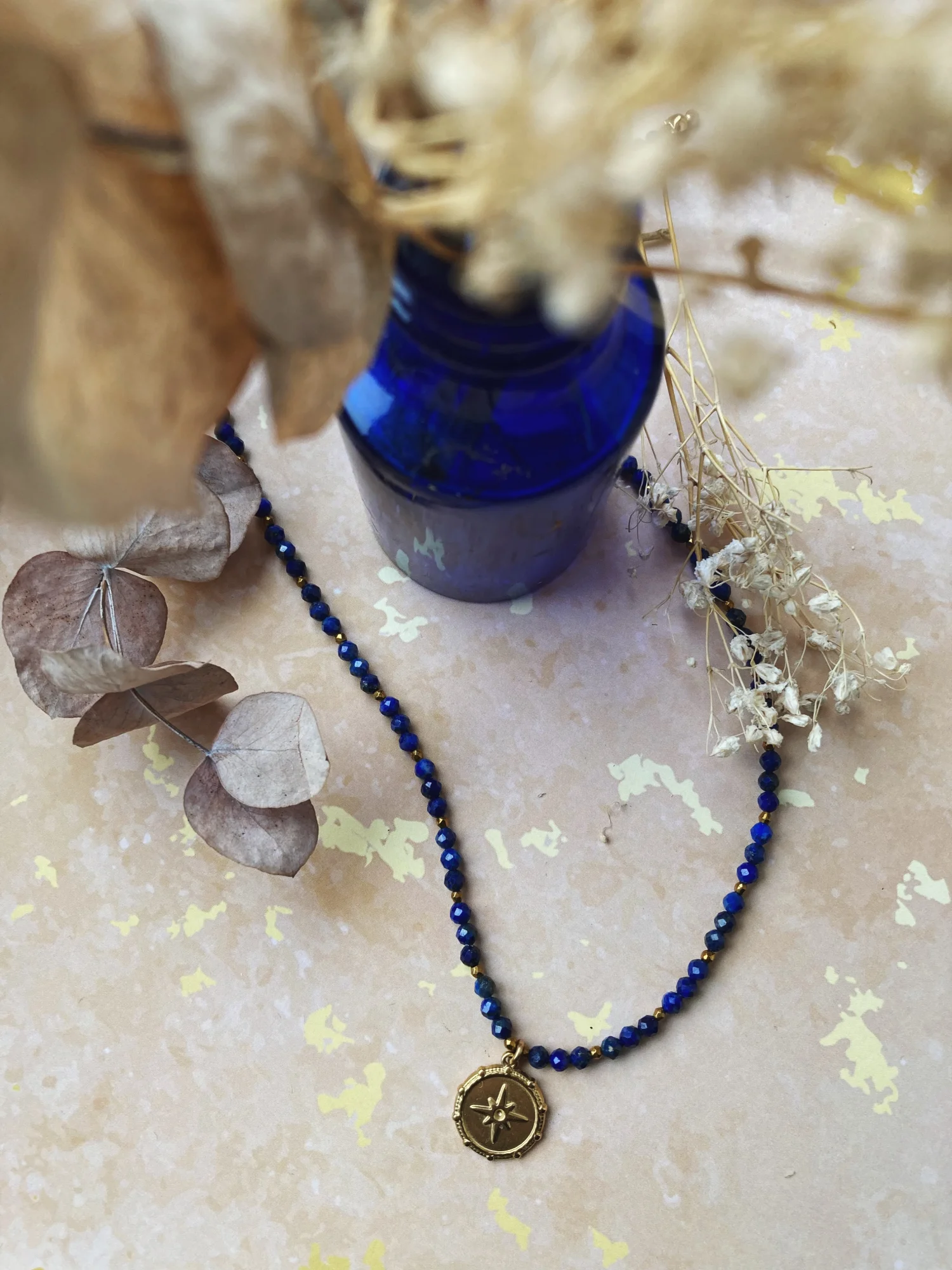 Naszyjnik Róża wiatrów z lapisem lazuli i hematytem